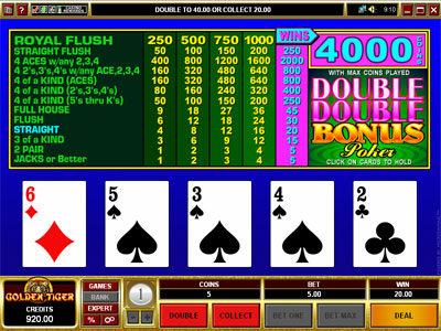 Double Bonus video poker is one of the most frequently played online video poker machines. If you're interested in playing this online casino game, you can find Double Double Bonus video poker at all Microgaming powered online casinos; including all of our featured casinos listed below!